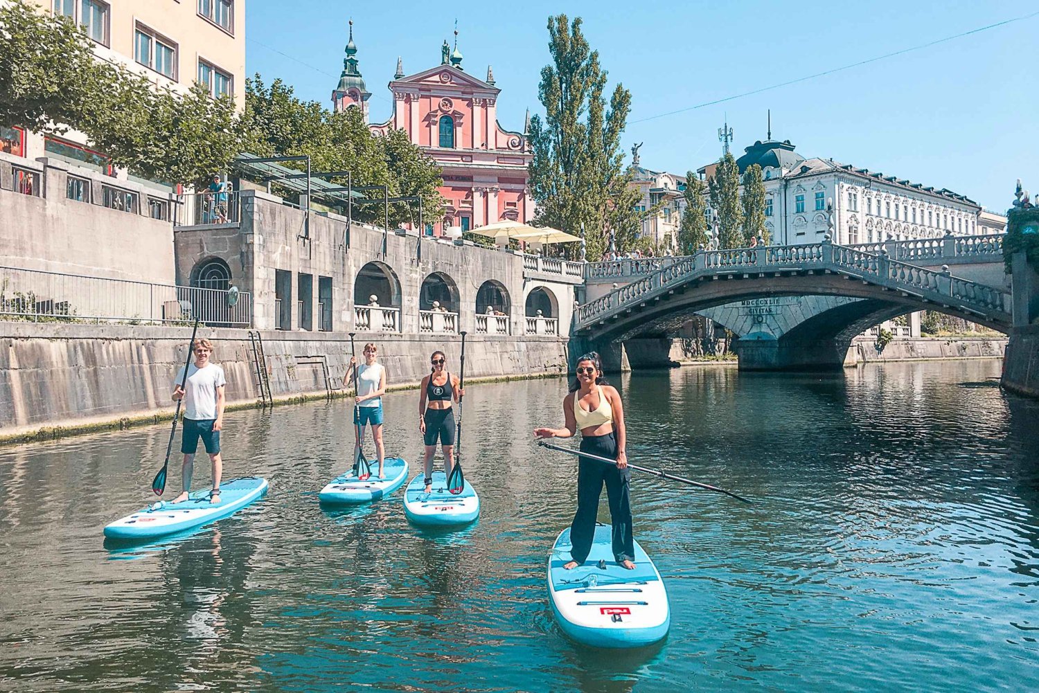 Esplora il cuore della capitale verde europea su una tavola da paddle! Premiato più volte come miglior tour estivo a Lubiana, intraprendi un'avventura attiva e rinfrescante sull'acqua! Impara, divertiti e rilassati mentre ti godi i luoghi iconici della città. Dopo l'incontro nell'area verde vicino al bar Spica, impara le basi del paddleboarding su una tavola SUP super sicura con il tuo istruttore certificato. È facile da imparare, ti sentirai a tuo agio in pochissimo tempo! Sei un principiante assoluto o un canoista appassionato? Questo tour è pensato per te. Esplora la città mentre scivoli sull'acqua... Rimarrai stupito dalla lussureggiante riva verde del fiume e potrai vivere luoghi famosi come i Tre Ponti e Piazza Prešeren in un modo diverso. Immergiti nell'atmosfera di Lubiana! Rinfrescati, rilassati e divertiti sulla tua tavola SUP! Il tuo equilibrio sarà messo alla prova con SUP, giochi divertenti e posizioni yoga! Fai attenzione, potresti finire per fare un tuffo nel fiume! Desideri rilassarti e riconnetterti con te stesso? Abbiamo anche il momento perfetto per la consapevolezza che ti aspetta. Ottieni alcune informazioni locali che scateneranno la tua curiosità! Condivideremo alcune storie interessanti sulla Slovenia verde e ti daremo alcuni consigli sui luoghi nascosti e sostenibili di Lubiana da non perdere! Ricorda la tua avventura. Riceverai alcuni ricordi fotografici del tour in modo da poter portare a casa un po' della Slovenia!Includes