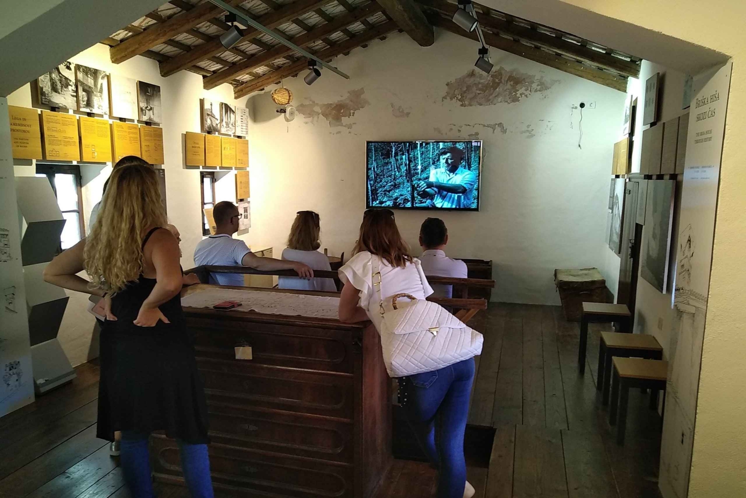 ゴリシュカ・ブルダ(Goriška Brda)全体について学びましょう。ローマ時代から、シュマルトノの特徴的なスカイラインを作り出している要塞の建設理由まで、この地域について学びましょう。誰がなぜ要塞を築いたのか?誰が要塞を守り、どのような生活を送っていたのでしょうか。 1850年代頃、この地域の典型的な農民であったコロンの家具付きの家を訪問。ワインセラー、キッチン、なだらかな丘の素晴らしい景色を望むバルコニー付きの寝室を探検しながら、コロンと彼らの日常生活について学びましょう。ツアーガイドの生解説付きで、1960年代のブルダの10分間の映画をご覧ください。 gaseと呼ばれる素晴らしい細い路地を散策し、残っている要塞の塔をすべて見つけてみてください...ヒント:Šmartnoから5つの塔を見ることができます。魅力的な家々を鑑賞し、その天才的な建築方法について学びましょう!なぜ屋根は急勾配ではないのか、屋根の下の美しい幾何学的な形は何なのか。 18世紀にこの地方最大の教会が建てられるまでに何があったのか、またその建築過程には何があったのか。鮮やかな色彩で描かれたトーン・クラーリ(Tone Kralj)の絵画を鑑賞し、その一部に隠された意味を学びましょう。Includes