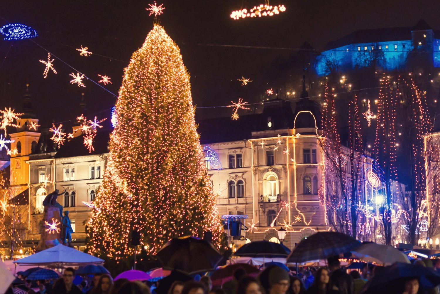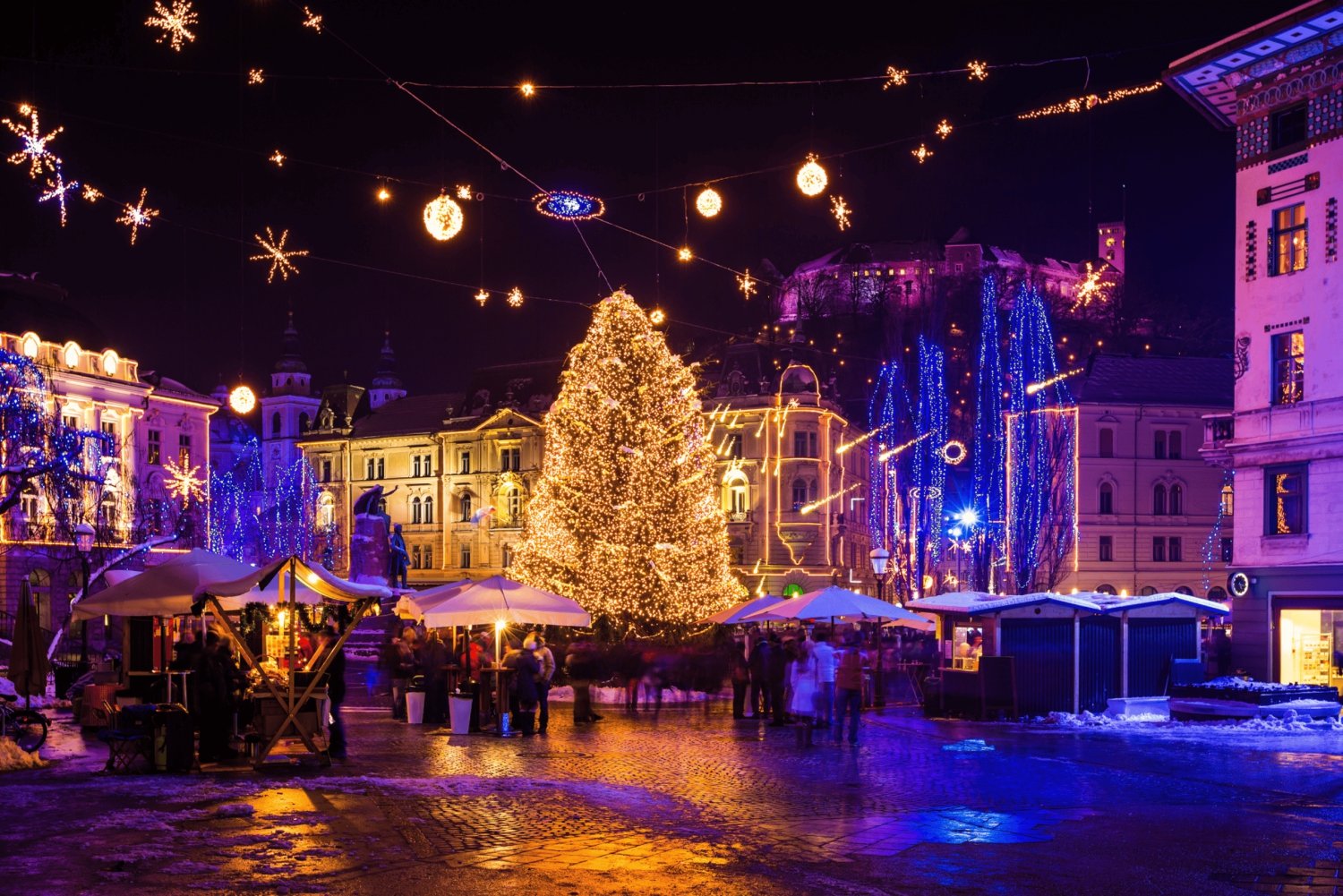 スロベニアの首都を訪れ、クリスマスマーケット、イルミネーション、伝統に包まれたクリスマスの魔法に包まれてください