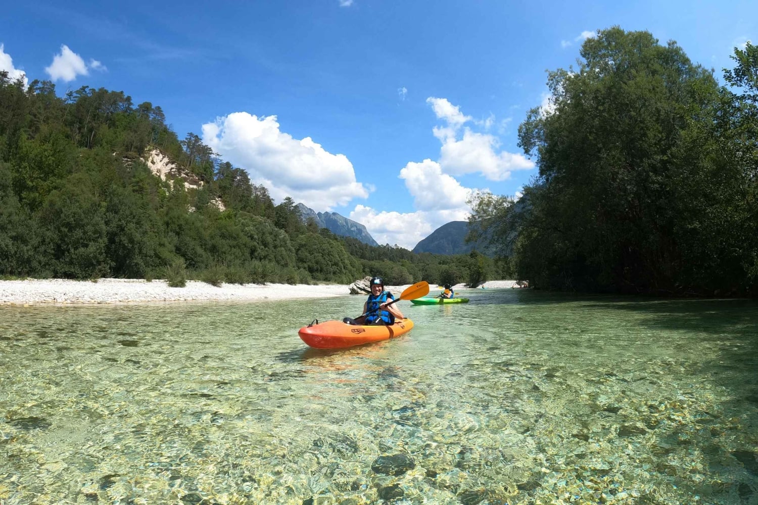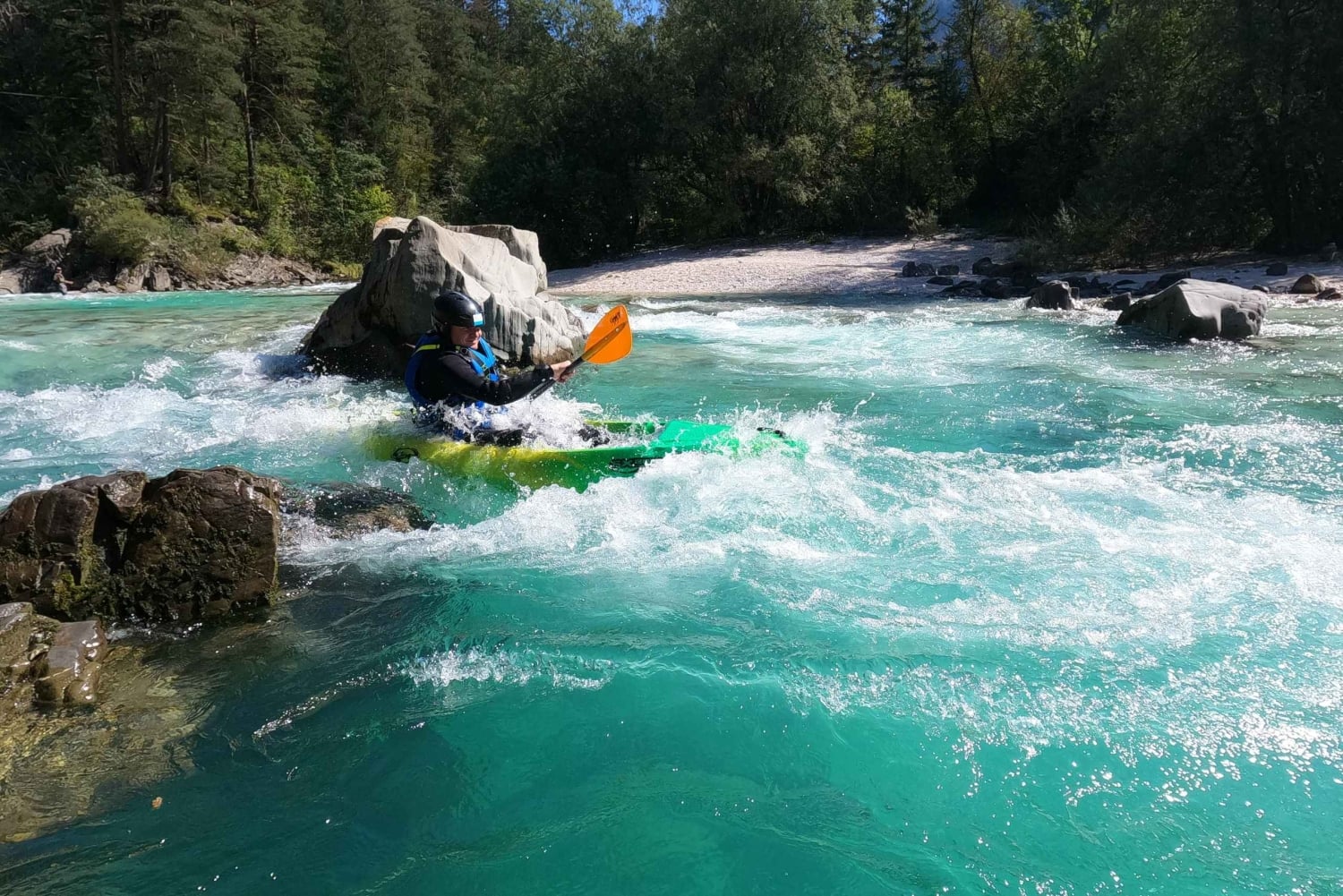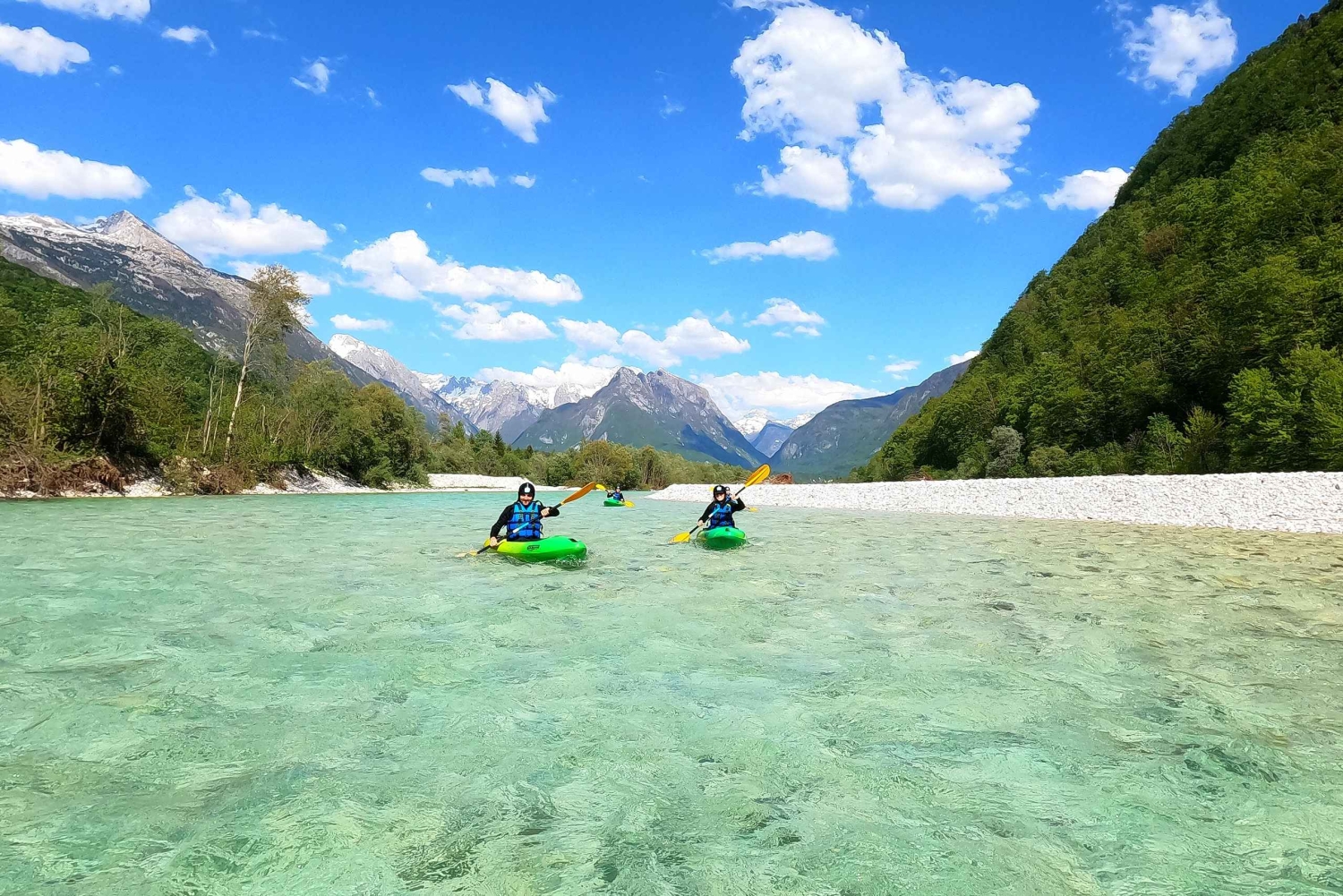 ネオプレン、ヘルメット、ライフジャケット、靴など、カヤック用のすべての装備を揃えた拠点に集合します。水着とタオルが必要です。その後、バンでカヤックのエントリーポイントまでお送りします(3分)。 この旅行は、ソチャ ヴェレーのボヴェツへの訪問を特別なものにするでしょう。 1時間半のパドリング、水しぶき、水泳をお楽しみいただけます。川の流れに乗って山に沿って、スロベニア最大のボカ滝やスロベニア最高峰のトリグラウ山が見える場所まで移動します。 パートナー、友人、ご家族と一緒に、このソチャ川ツアーをお楽しみください。 カヤックツアーの後は、私たちの拠点またはピックアップ場所まで車で戻ります。 ツアーは初心者と8歳以上のお子様に適しています。 集合場所は私たちの拠点、Čezsoča 53, 5230 Bovec で、アクティビティ時間の 15 分前に集合します。 ボヴェツ(Ledina 5, 5230 Bovec)またはヴォデンサのキャンプ場からのお迎え(アクティビティ時間の 20 分前)も手配できます :) 水着とタオルが必要になります。その他の機材や移動手段は弊社が提供いたします。Includes