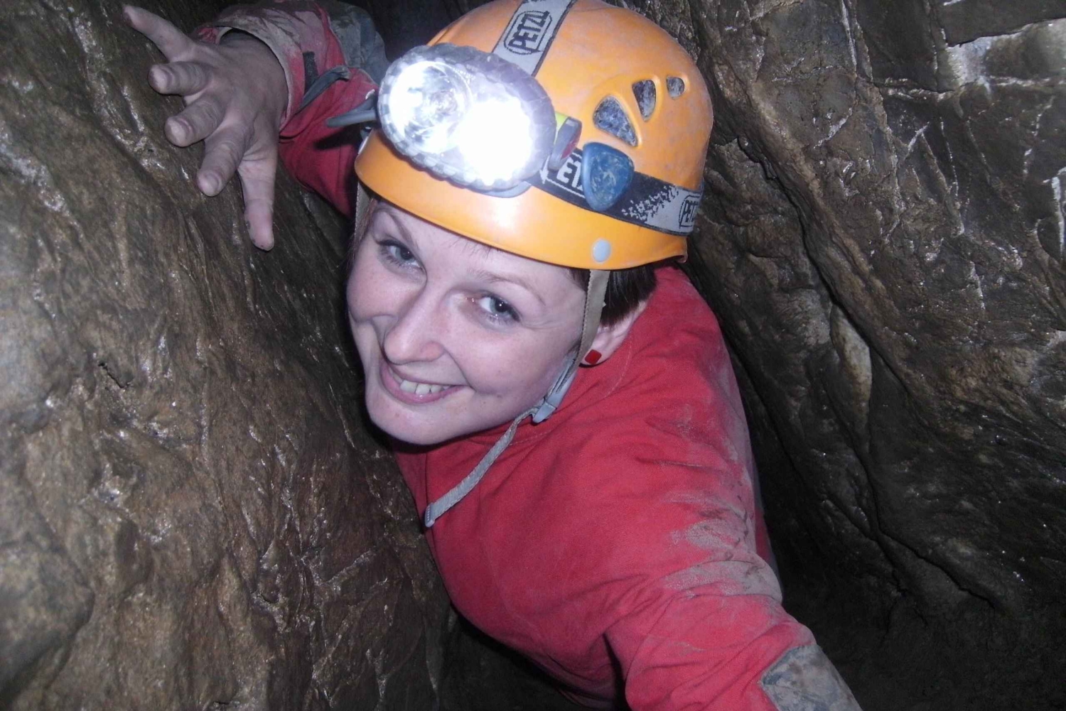Exploration of a mysterious cave like a real caver, climbing, abseiling, omnipresent darkness, helmets, headlamps and 3 hours of great adventure.