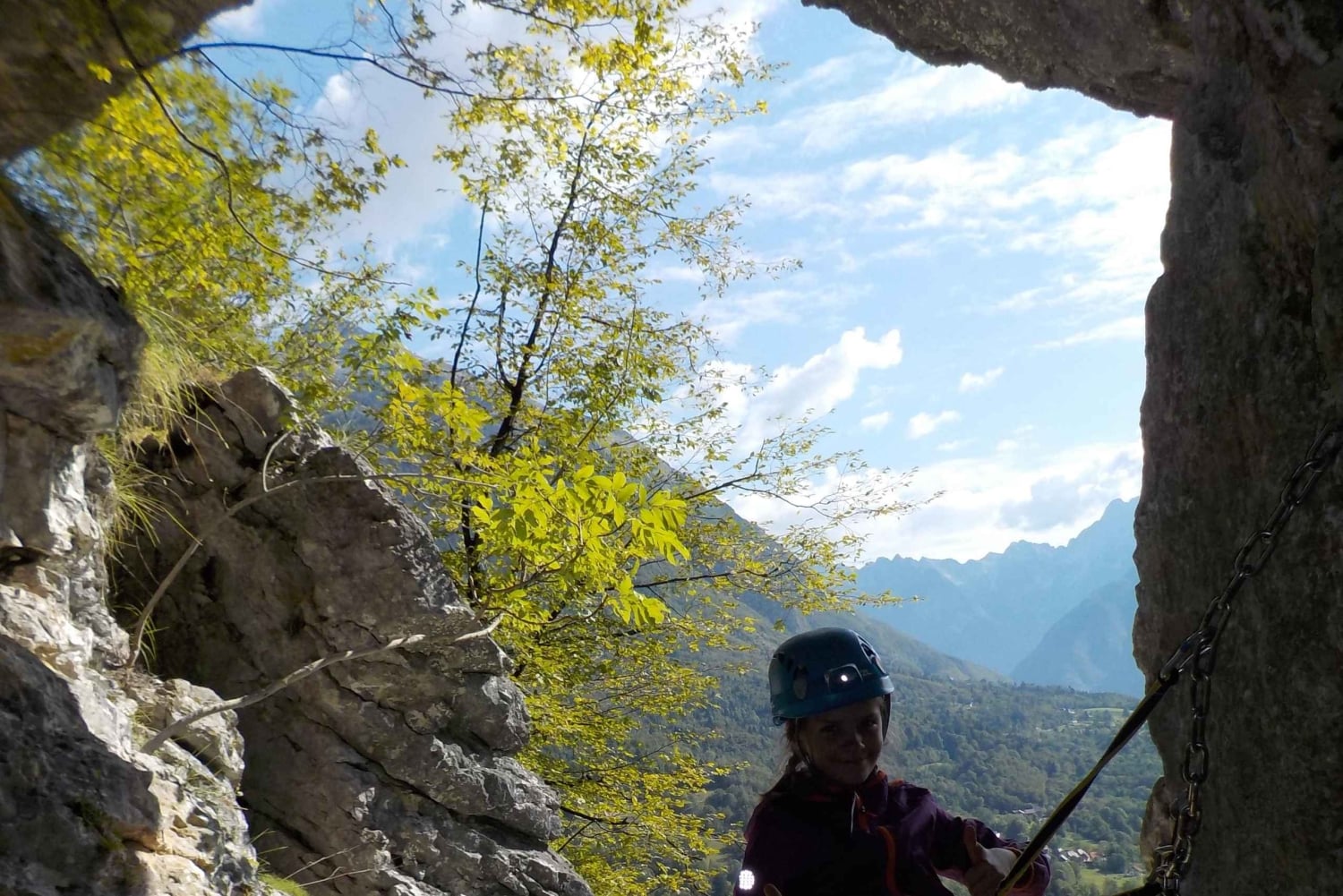 Access rock balcony with a rope traverse will lead us to a small cave entrance. A draft from the cave hits us in the face and darkness surrounds us. Only the light of our headlamps will guide us on our underground journey. We will overcome the entrance abyss with a rope and reach the underground corridor. We will overcome several chasms and pools using a system of rope traverses. We will free climb to overcome the vast chimneys in the ceiling of the corridors and descend several chasms. By a labyrinth of corridors we will finally reach a massive fossil corridor, which ends with a rock window in the rock wall, from where we rappel 45m back out of the cave to the surface.Includes