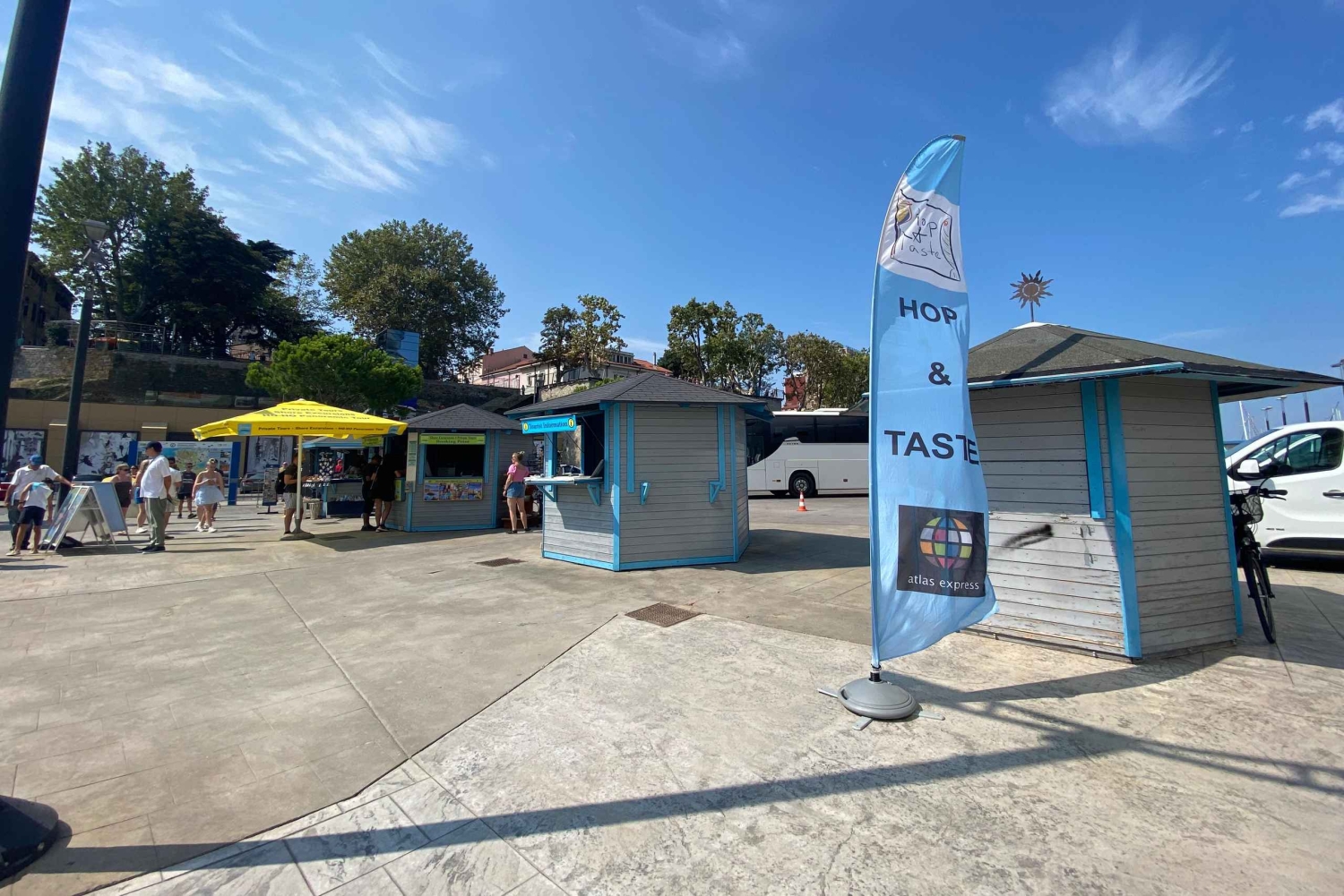 - Quando você desembarcar do navio no Porto de Koper, nossa simpática equipe estará aguardando ansiosamente a sua chegada, pronta para recebê-lo com sorrisos calorosos e dar as boas-vindas. Entendemos que embarcar em uma nova aventura pode ser empolgante, mas ao mesmo tempo assustador, por isso nosso objetivo é tornar sua experiência a mais perfeita e agradável possível. Procure a bandeira de praia LARANJA com o logotipo Hop & Taste no píer de passageiros. Ao lado da KOPER TOURS SOUVENIR SHOP azul, do lado direito de você