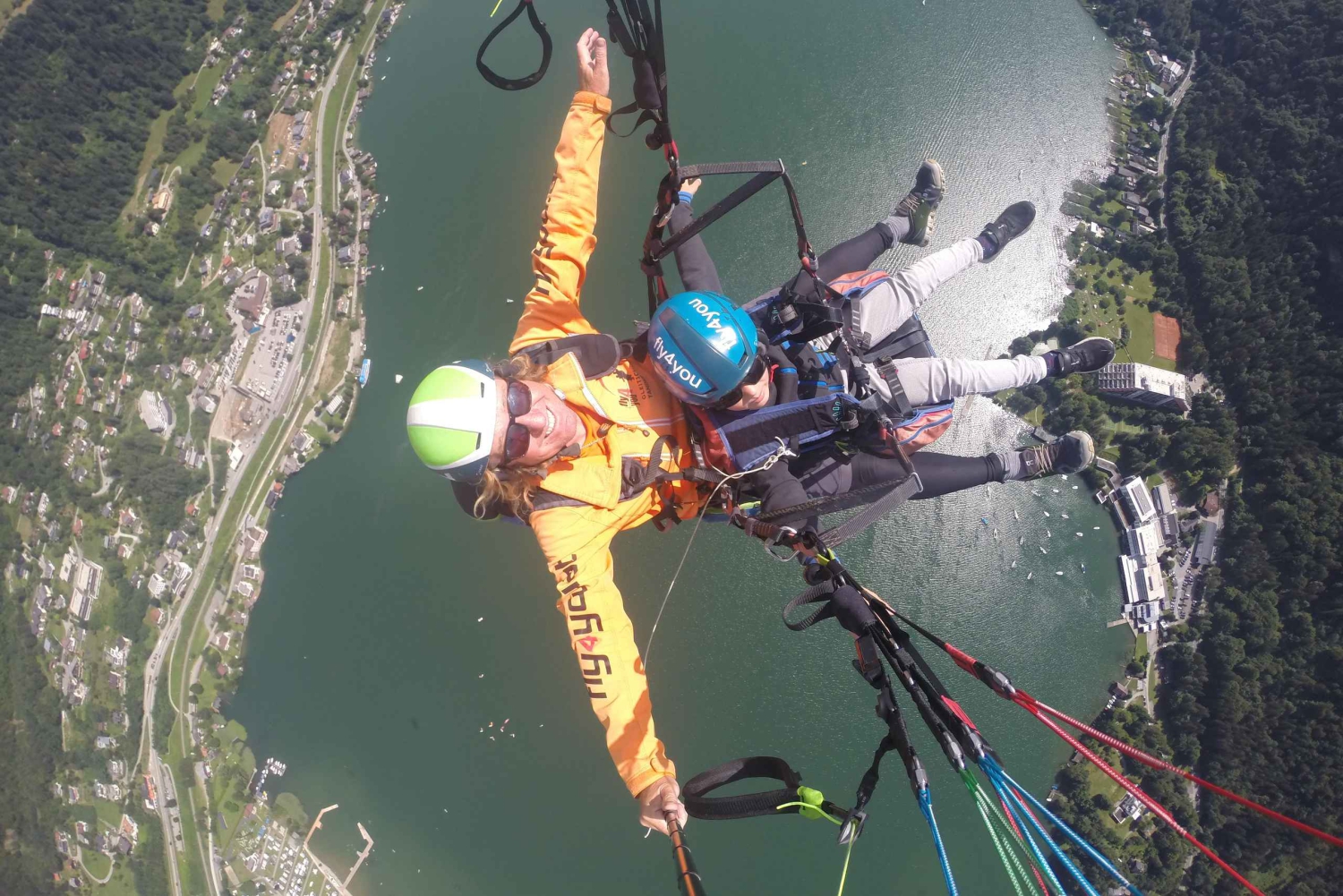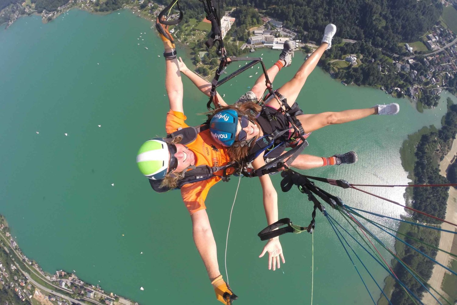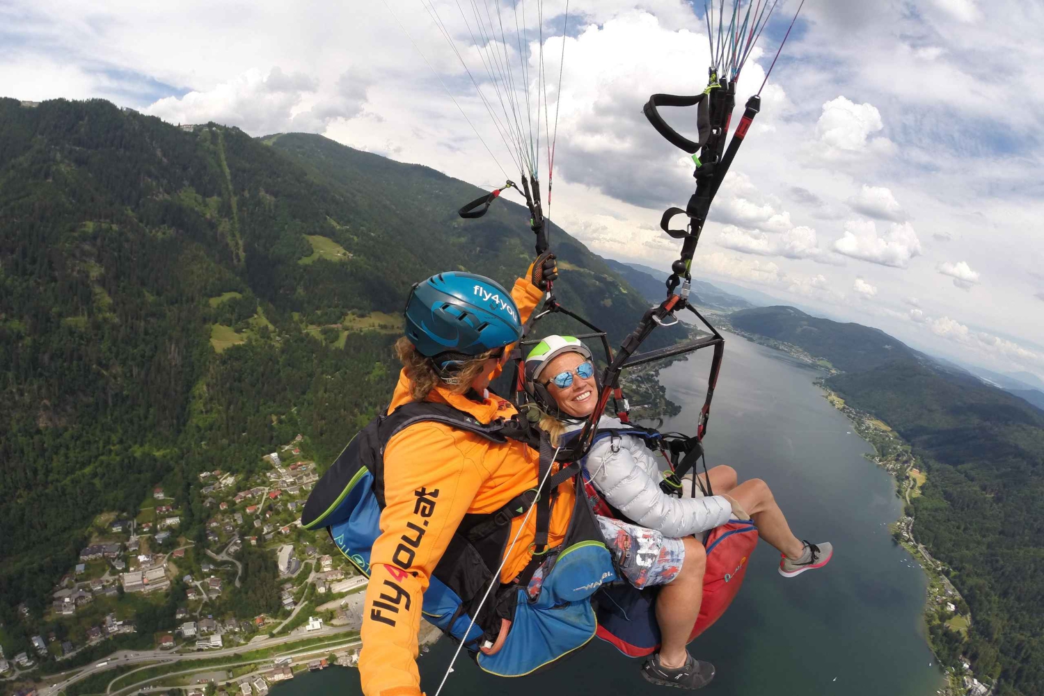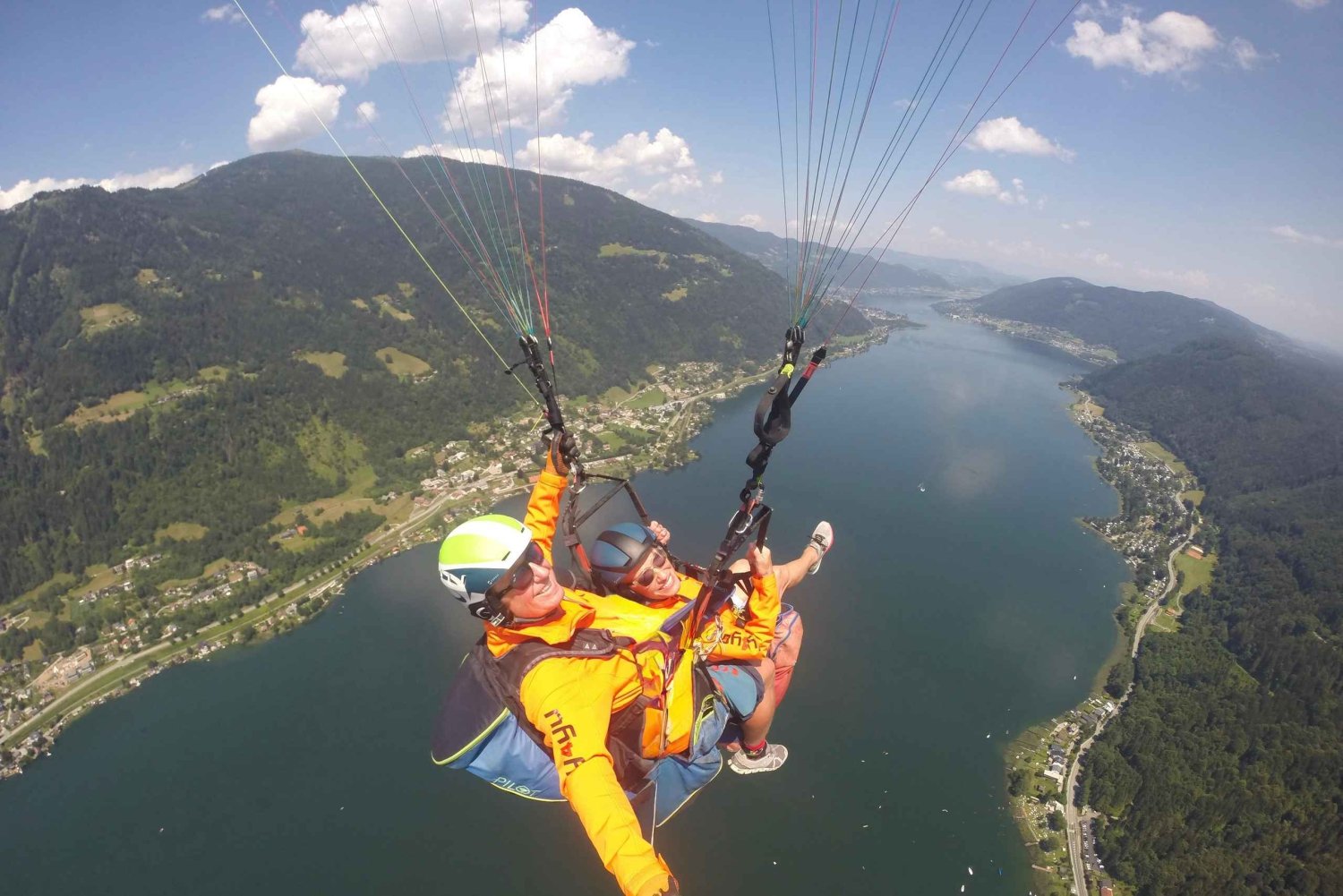 A tua aventura de voo panorâmico sobre o lago Ossiach: O primeiro ponto alto é o passeio panorâmico na gôndola e no teleférico até ao cume do Gerlitzen. A descolagem: O procedimento de descolagem começa com um breve briefing e um ajuste cuidadoso do arnês. Assim que tudo estiver no lugar, estás pronto para partir: com alguns passos determinados, o planador ganha velocidade - e tu levantas suavemente voo do chão. O momento da descolagem é curto mas impressionante. O voo: Durante o voo, deslizas livremente pelo ar e podes desfrutar do voo ao máximo Experimenta a liberdade de voar num inesquecÃvel voo duplo de parapente a partir de Gerlitzen! Descolamos juntos de 1.940 metros acima do nÃvel do mar e imagina-te a voar de mãos dadas com o vento, levado pelas térmicas do Gerlitzen, numa aventura única com vistas de cortar a respiração. O lago Ossiach brilha por baixo de ti, o famoso Wörthersee cintila ao longe e o tranquilo Faakersee está embutido na paisagem como um espelho. O imponente Karawanken e os majestosos Alpes Julianos emolduram o panorama como um quadro. Um voo duplo de parapente é mais do que uma aventura - é um momento que vives com o coração. 1.400 metros de altitude entre a descolagem e a aterragem, pelo menos 20 minutos de intensa experiência na natureza, uma sensação pura de liberdade e o sentimento inesquecÃvel de ser um só com o céu. Ideal para todos aqueles que querem experimentar voar de perto e descobrir a CarÃntia do ponto de vista de um pássaro! A aterragem: A aterragem é calma e controlada. O planador desliza suavemente em direção ao solo e o local de aterragem aproxima-se lentamente. Flutuas quase sem peso até que os teus pés tocam finalmente no chão. Com dois ou três passos leves, apanhas o movimento - e depois voltas a pousar com segurança e firmeza no chão. Um final tranquilo para um momento especial.Includes